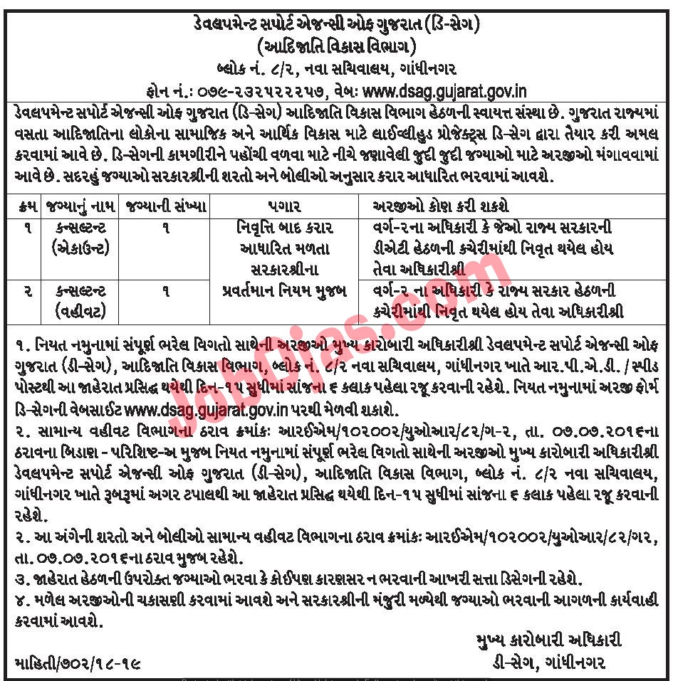 D-SAG Tribal Development Department Of Gujarat, Recruitment for Consultant Posts 2018