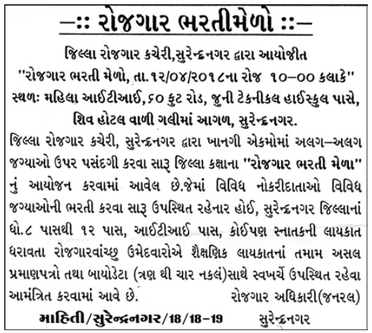 Employment and Training Department, “Job Fair and Apprenticeship Bharti Melo” Various Districts 2018