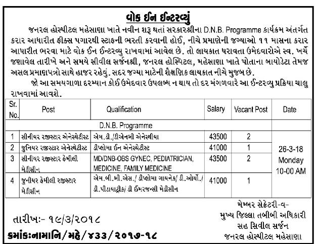 General Hospital Mehsana Recruitment for Various Posts 2018