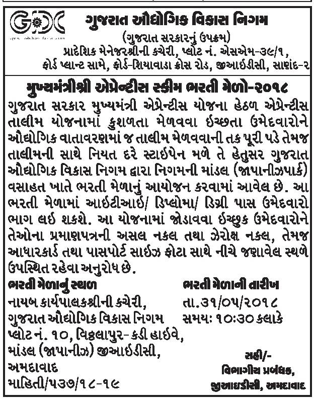 GIDC Sanand (Ahmedabad), “Apprenticeship Bharti Melo”  for Various Trade 2018