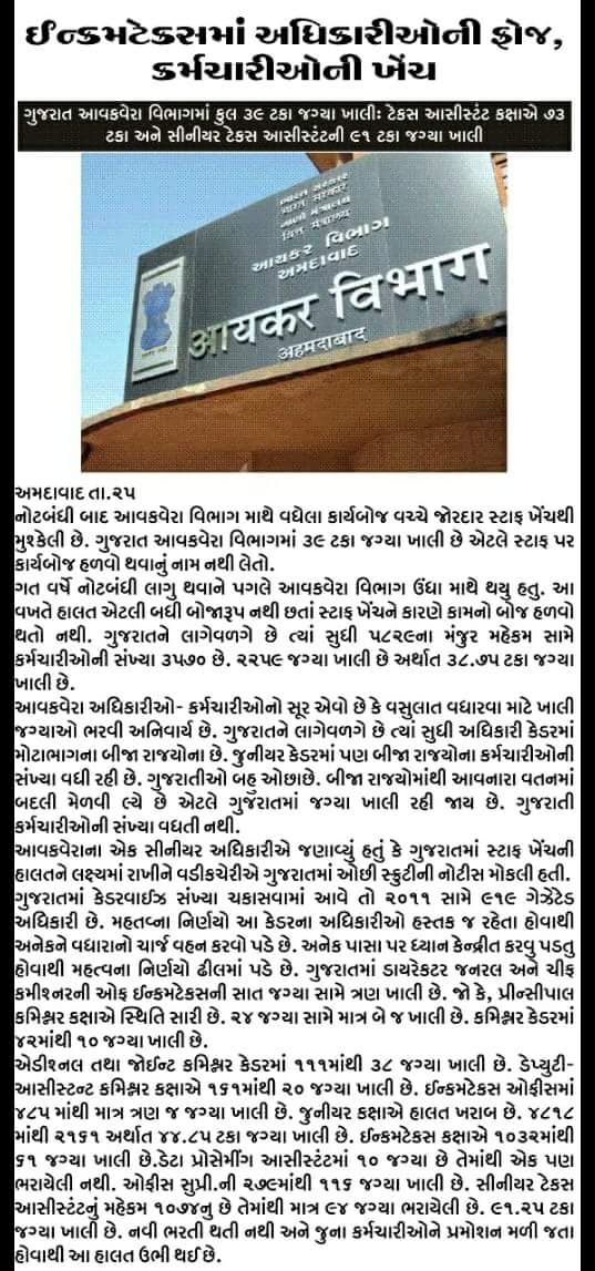 - Good News Gujrat Income Tax Department 39% Jagya Khali : News Report