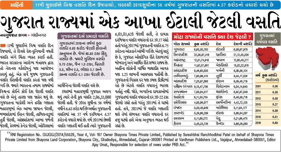 Gujarat ni Vasti Italy ni Vasti Barabar : Jano Kaya Rajyani Vasti Kaya Desh ni Vasti ni Barabar