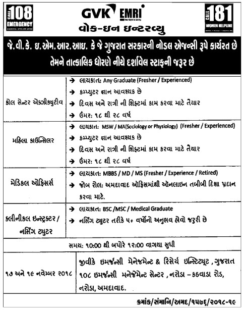 GVK EMRI Recruitment for Various Posts 2018