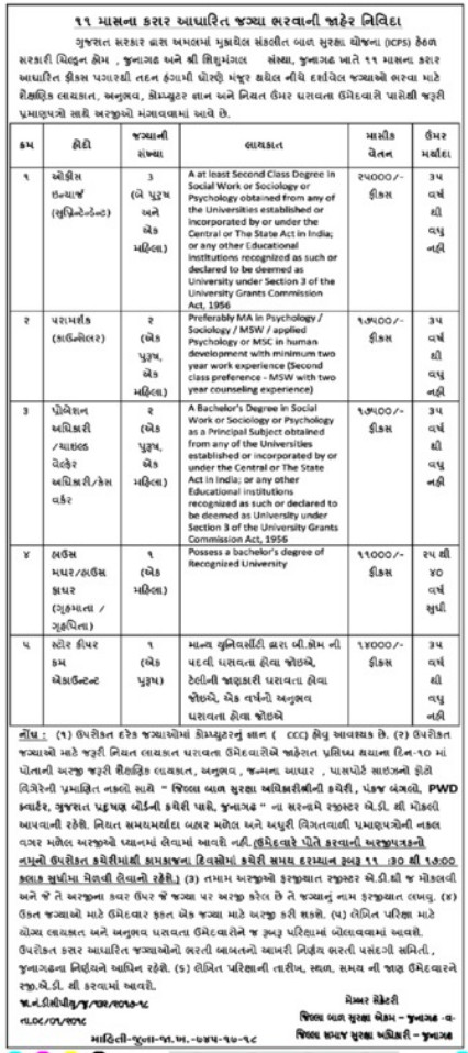 ICPS Junagadh Recruitment for Various Posts 2018 Other Details like No.Of Posts, Educational Qualification, Age Limit, Selection Process, Application fee and How to Apply are given below.
