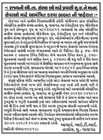 ITI Halol (Pavagadh) Recruitment for Pravasi Supervisor Instructor Posts 2018