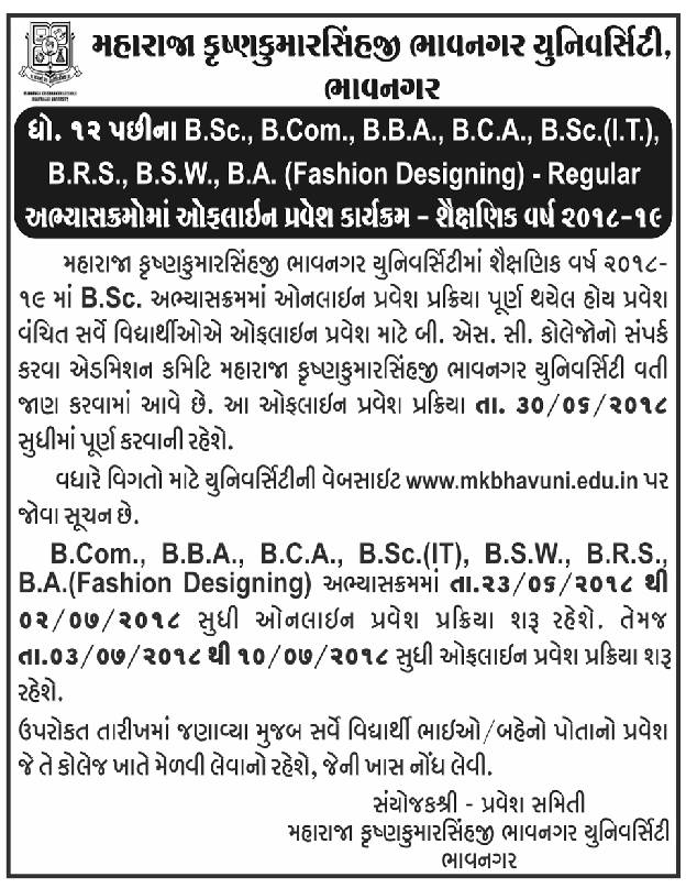 MK Bhavnagar University Admission for Bachelor Degree 2018
