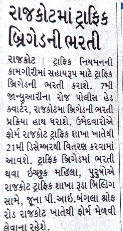 Rajkot Traffic Brigade Recruitment 2017-18