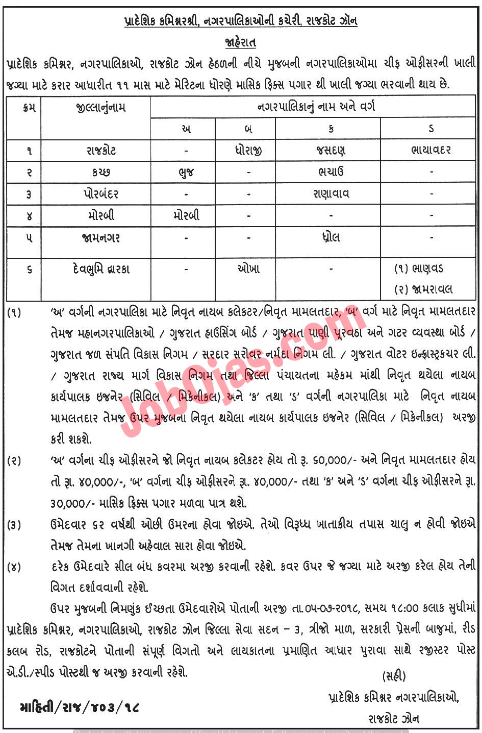 Regional Commissioner Rajkot, Nagarpalika Chief officers Recruitment 2018
