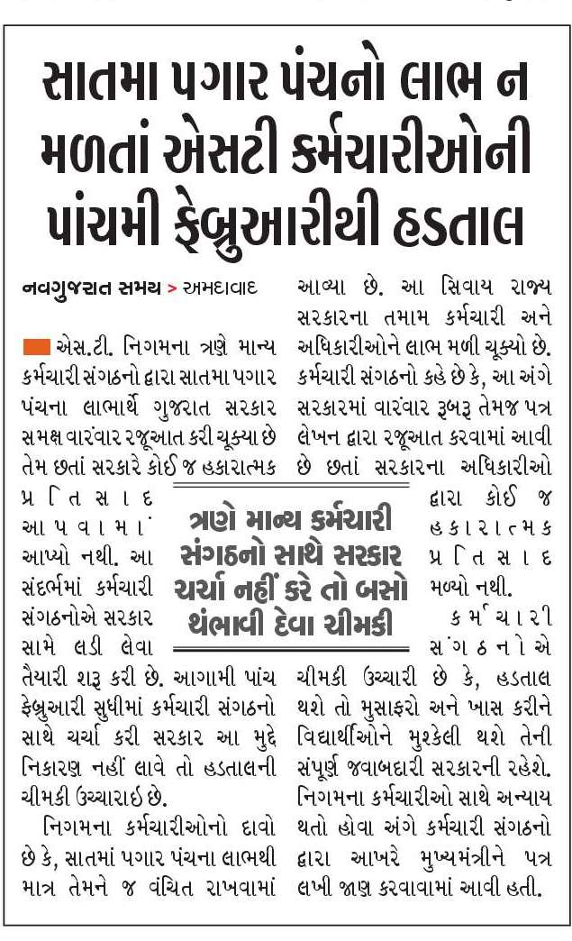 - Satmu Pagarpanch : Satma Pagarpanch no Labh nahi Malta ST Karmachari Hadtal
