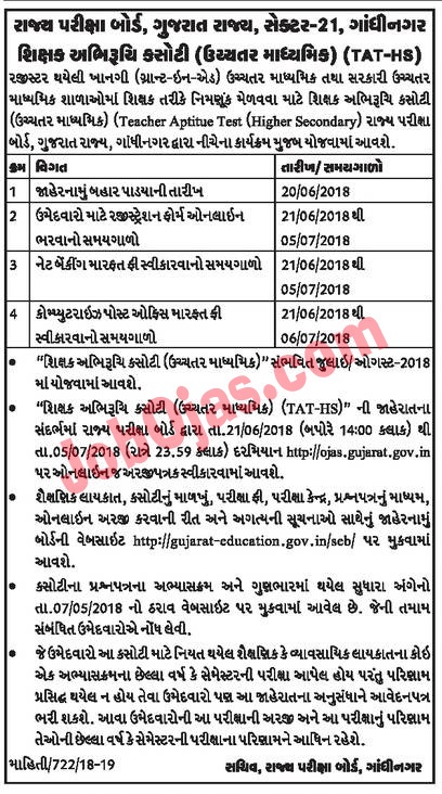 Name of the Exam : Gujarat Teacher Eligibility Test 2018 (TAT Higher Secondary)