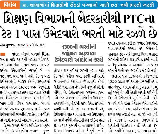 TET-1 Pass Primary (Std-1 to 5) Bharti Related News Report |