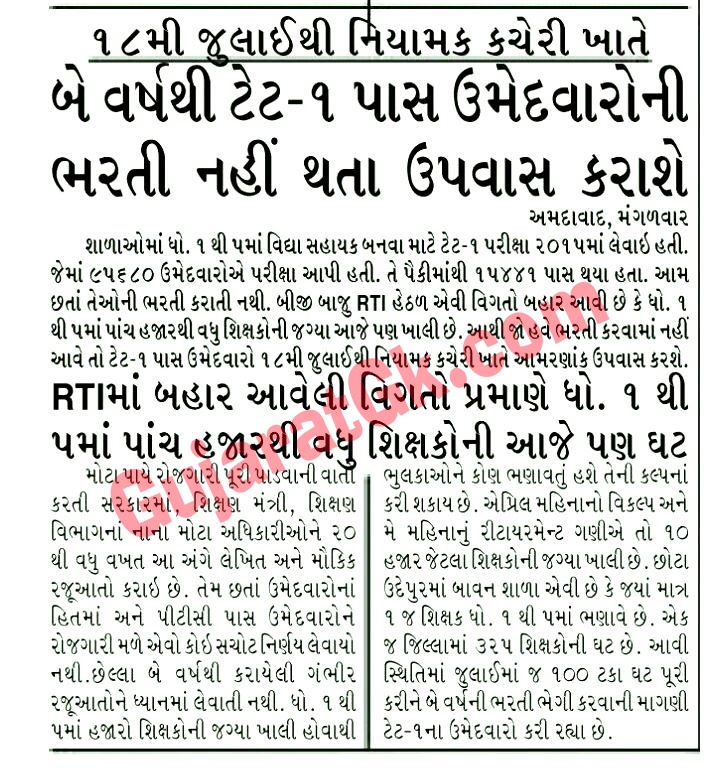 - TET-1 Pass Primary (Std-1 to 5) Bharti Related Important News