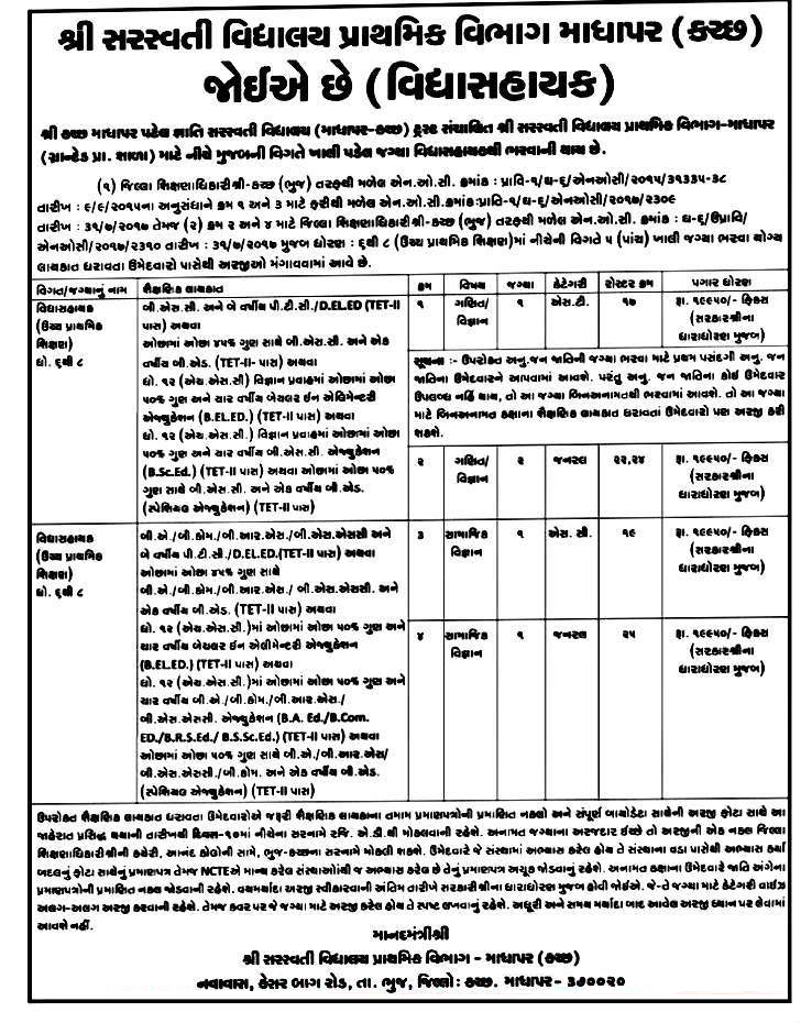 Vidhyasahayak Bharati Sarsavati Vidhyalaya Primary School ma Bharati 2017