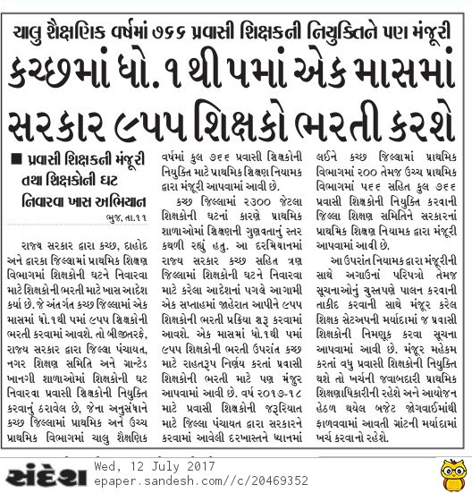 - Vidyasahayak Bharti : Std-1 to 5 ma Vidyasahayak ni Bharti Ek Month maThashe News Report